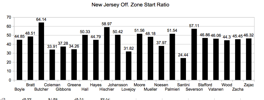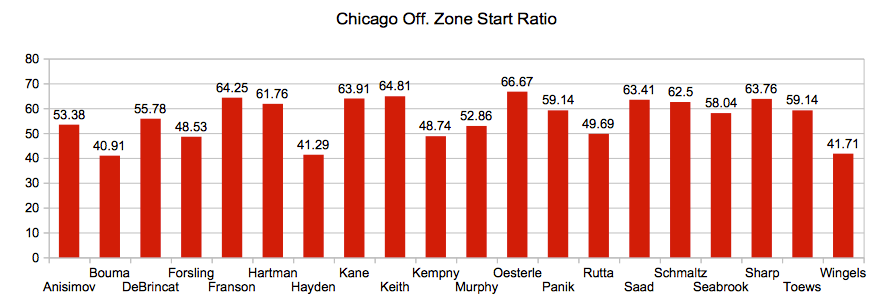 Off. Zone Start Ratio – percentage of shifts started in offensive zone