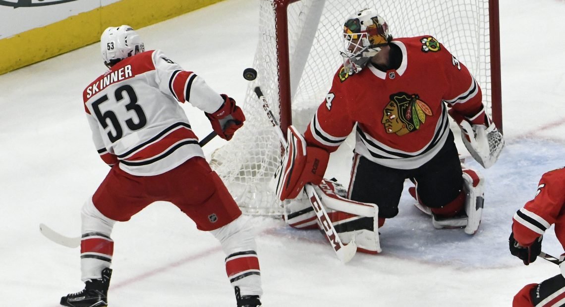 –The Hawks got killed in possession and shots tonight, so even those who played well (more to come on that) seemed like they had a dismal night if you just look at those stats (so don’t bother). We’re used to the Hawks dominating in those numbers while still managing to lose, but tonight they had a 37.5, 22.2, and 36.7 CF% in each period. Added to that, for most of the game the Canes had double or more than the number of shots that the Hawks did. The Hawks barely got to over half the amount of Canes’ shots, finishing with 24 to 40. Now, given the Canes’ consistency in giving up so few chances, I can’t say I’m exactly shocked by this. The fact that the Hawks only managed 24 shots but scored twice really drives home the point that Scott Darling has been quite bad.