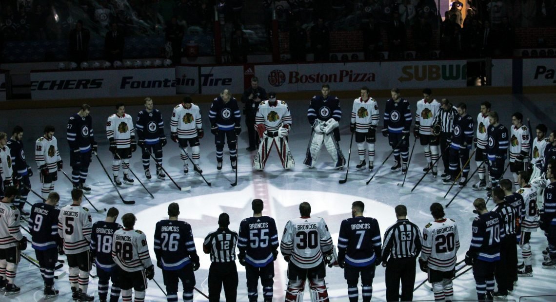 – First things first, I want to tip my cap to the way these two teams paid tribute to horrible tragedy of the Humboldt Broncos hockey team. From the vigil in the picture above, to the wearing of the word “Broncos” on every player’s jersey, and the donations made by the teams and league, they did a wonderful job of paying respect to the tragedy and offering their support. Good on them.