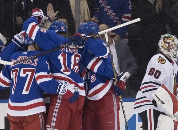 Unfortunately, Dylan Strome’s brother Ryan scored shortly into the 2nd period to tie things up for the Rangers after a penalty by Borgstrom put the Hawks on the kill. Ryan Strome was set up easily by Adam Fox and old friend Artemi Panarin to get the puck past a sprawling Kevin Lankinen. Fox and Panarin would later team up again near the end of the period to get the Rangers the lead, sneaking the puck just under Lanks and into the back of the net.